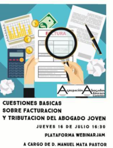 Desde la Agrupación hemos preparado un curso sobre: «Cuestiones básicas sobre facturación y tributación del abogado Joven» que será impartido por nuestro Decano D. Manuel Mata Pastor el jueves 16 de julio a las 16:30 a través de la plataforma Webinarjam.